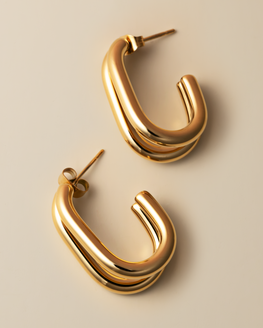 The Double Layer Earring features two rectangular hoop layers creating a twist on a classic hoop. Dress them up or down, liven up any outfit with this set.