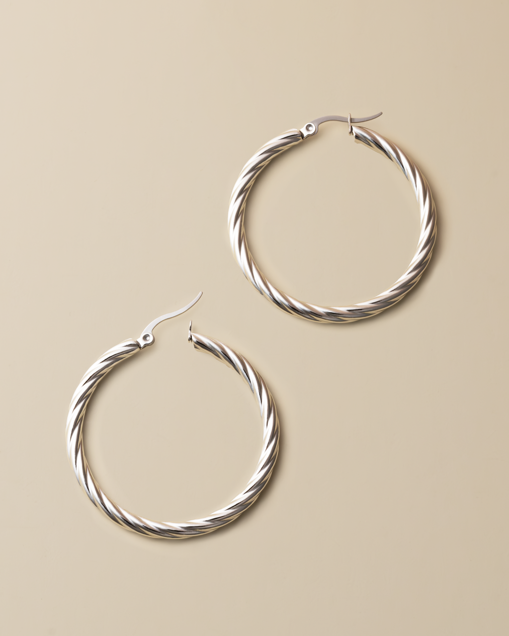 Put a twist on the everyday hoop with the Silver Twist Hoop featuring a croissant twist. It's time to upgrade your everyday hoops with this set.