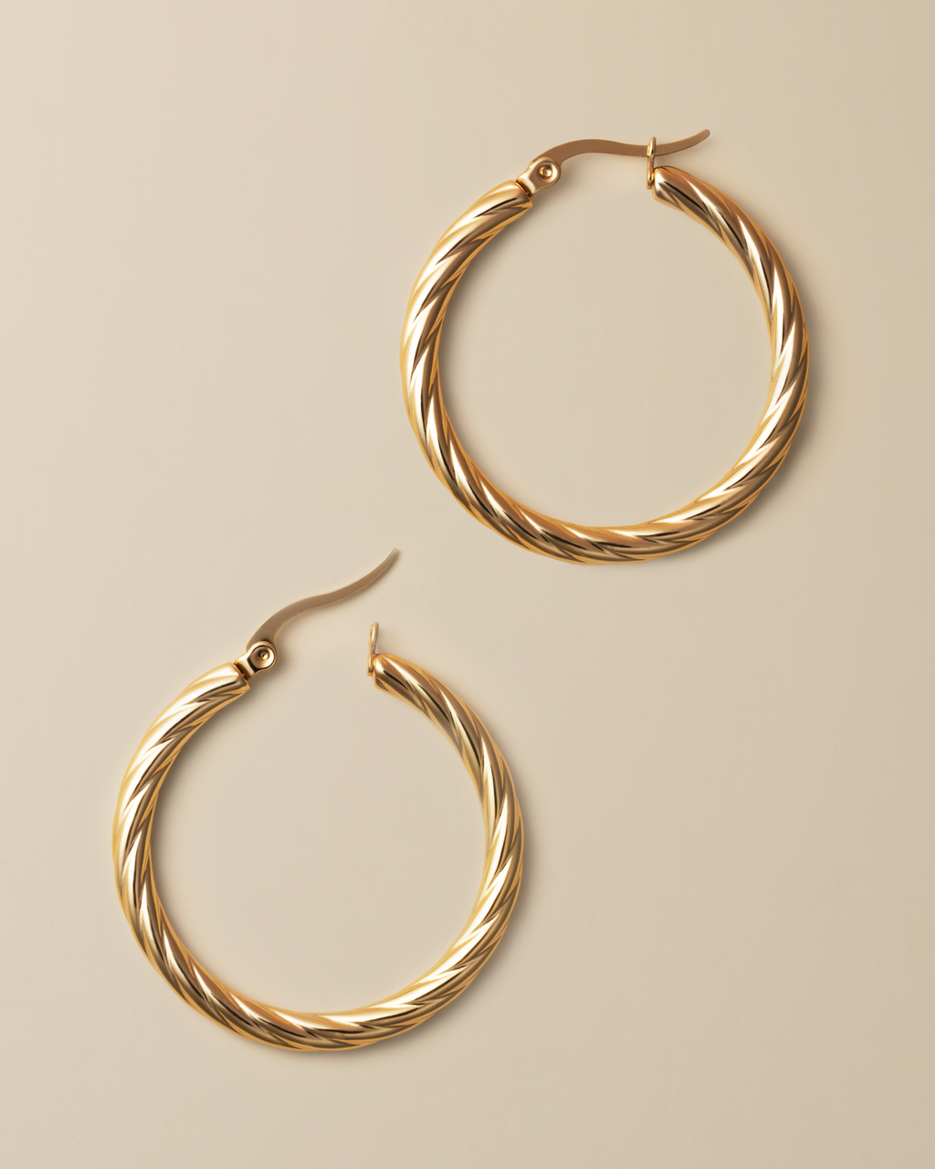 Put a twist on the everyday hoop with the Twist Hoop featuring a croissant twist. It's time to upgrade your everyday hoops with this set.